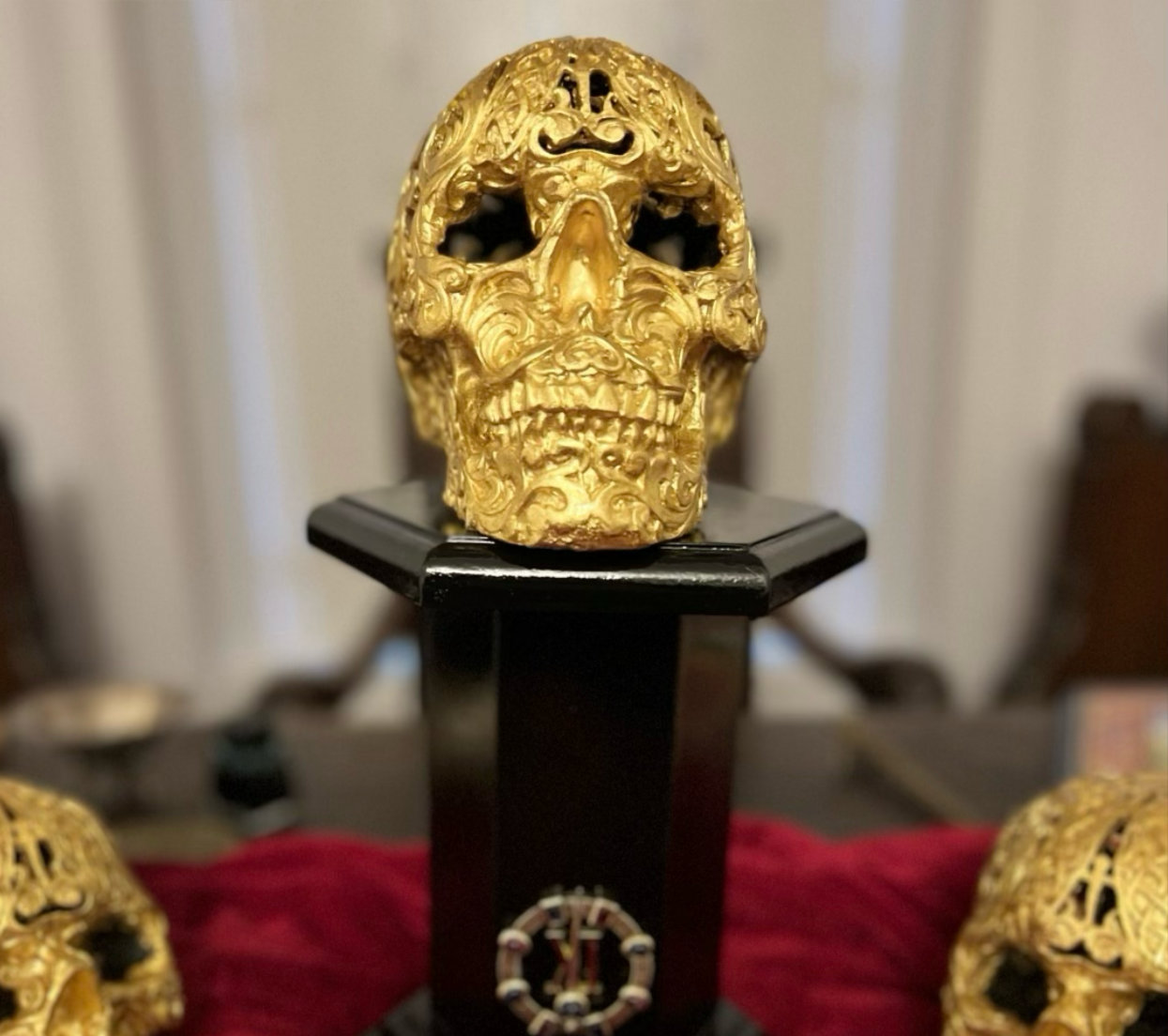 For a picture gallery of the impressive gilded skulls which make up the Trophies for The Faces of the Past competition see below and visit “The Towers of Eden” website at towersofeden.com.